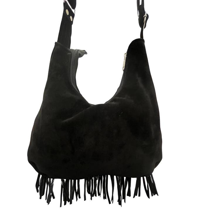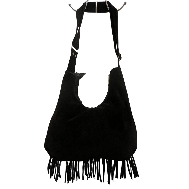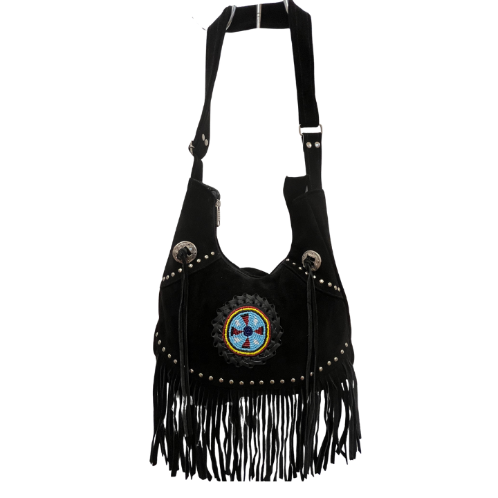 Genuine Cow Split Suede Leather Fringe Shoulder Bag with Handmade Beading