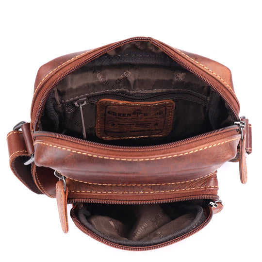 Discover the perfect blend of style and practicality with The Forest Grove Compact Leather Messenger Bag. Crafted from premium, rich brown leather, this exquisite bag is designed for the modern individual on the go. Its compact yet efficient design offers ample space for your essentials without compromising on elegance.