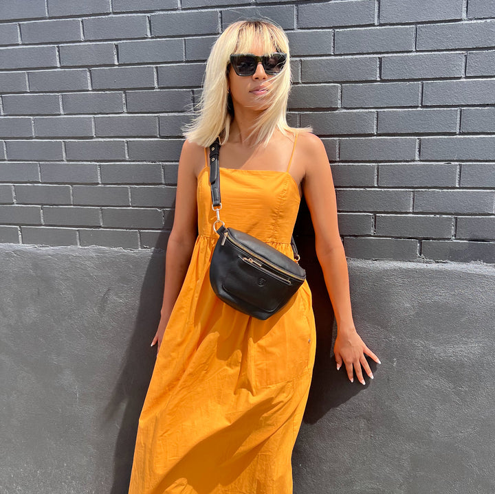 Ellis is a fun and functional fanny pack made from soft pebbled vegan leather.