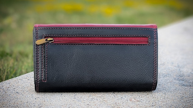 Behind the slots, find two full-length pockets and a secure central zip compartment.