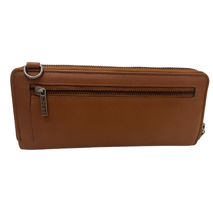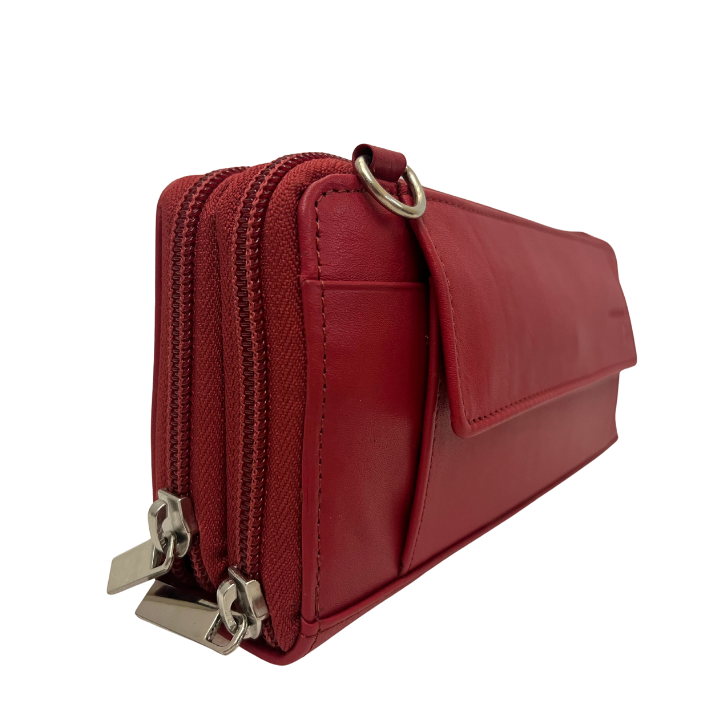 • Harmonica with flap celebrates the fusion of traditional and contemporary styling. Effortlessly urban-chic with a laid back attitude. Featuring the latest RFID wave blocking technology to ensure your data and cards are safe. The special metallic layers integrated into the card slots prevent thieves from electronically reaching into your wallet. Finely hand-crafted in top grain leather. This versatile clutch wallet features multiple pockets and an abundance of credit card slots. The contents are kept secure by a full zipper closure.